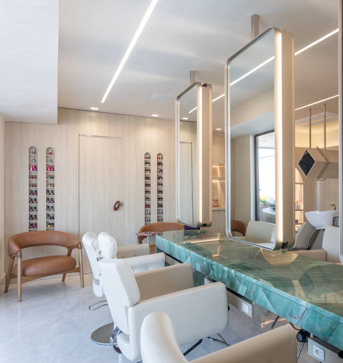 O projeto do salão Gilvan Cabeleireiros, assinado por Lidiane Donato Arquitetura, traduz com precisão a elegância, o cuidado e a sofisticação que fazem parte da identidade da marca. Com uma paleta neutra, texturas naturais e iluminação planejada, cada detalhe do ambiente convida à experiência. Mais do que um espaço funcional, o salão é uma extensão da visão de Gilvan Pinheiro: um lugar onde beleza, bem-estar e estilo se encontram.